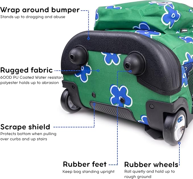 J World Sundance Laptop Rolling Backpack for Girls Boys. Roller Bookbag with Wheels, Picnic