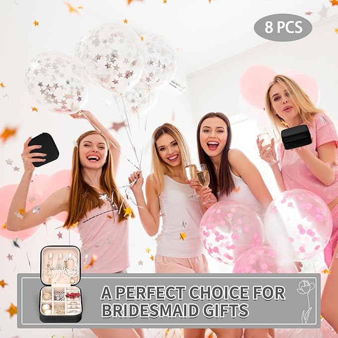 - Excellent Value For Money: Package includes 8 pack black jewelry cases. This travel jewelry box can keep your jewelry organized and prevent your necklaces from tangling. Sufficient quantity to meet most of your needs, for example as bridesmaid proposal gifts. Compared to buying individually, you can enjoy a more affordable price.