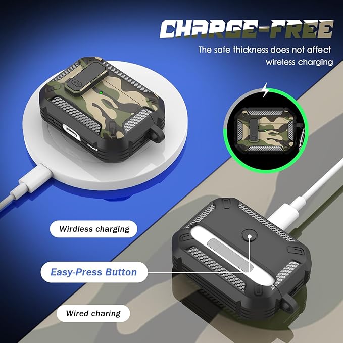 - Unique Security Lock: Upgraded security lock design makes it easier to open and close. Keeps the for AirPods charging case well closed and ensures that the cover never falls off.