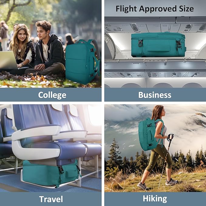 Taygeer Carry on Backpack for Men Women, Luggage Laptop Backpack for Airplane Travel with USB Charging Port, 35L Water Resistant Gym Weekender Bag for College Gift, Peacock Blue