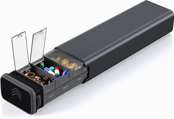 - Portable: The size of the travel pill box is 6.7 x 2 x 1.2 inches, great for on-the-go use; It is compact and lightweight, enough to fit into your bag