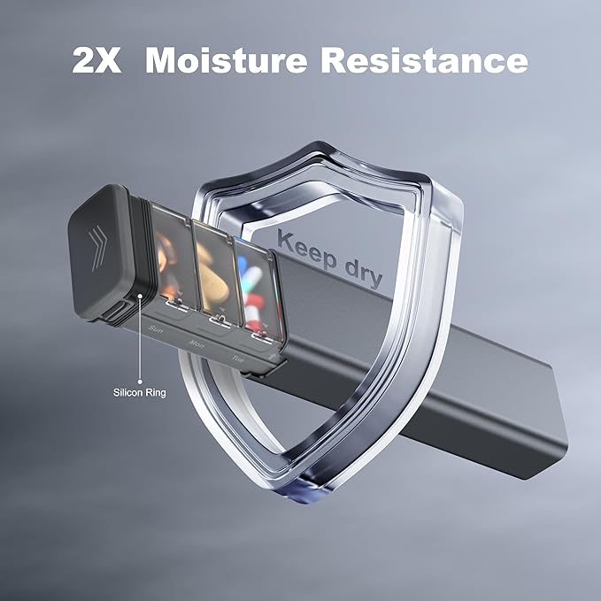 - Better Moisture-Proof and Protection: This upgraded 7 day pill organizer with ultra-strong and light aluminum tubing, separate lids and silicon rings on both sides; Increased security and moisture resistance, brings you a better using experience