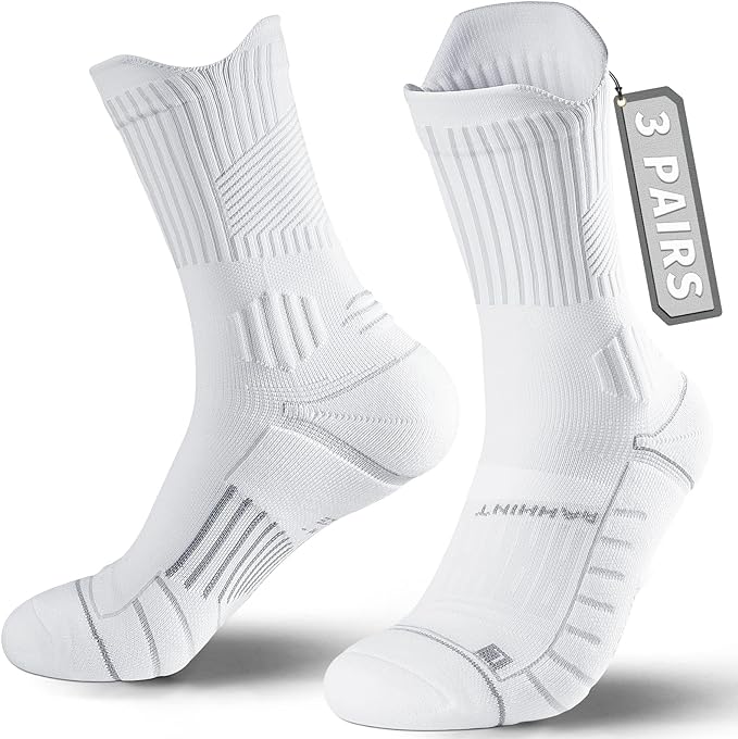 Compression Running Socks 3 Pairs, Cushion Crew Socks, Anti-Blister Moisture Wicking Athletic Hiking Basketball Socks