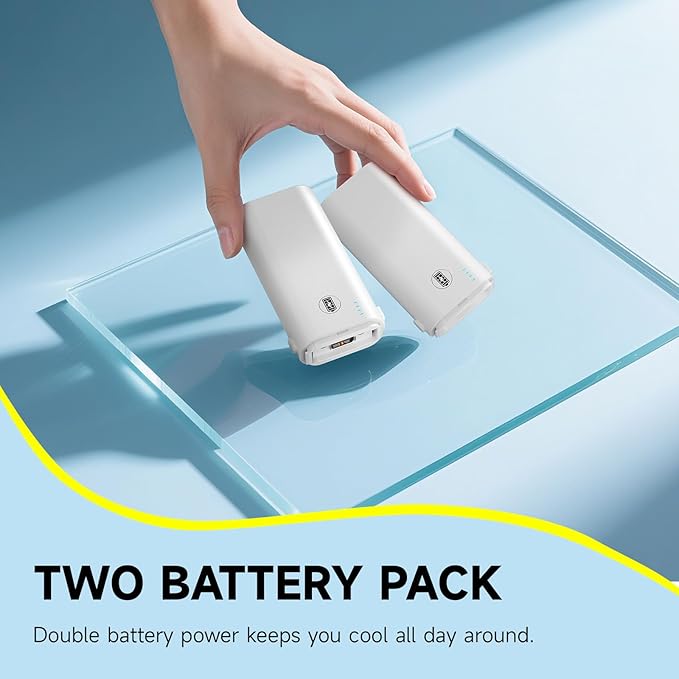 - More power for you: Come with two battery packs, up to 40Hrs cooling, power exhausted, use another one immediately, save charging waiting time (The battery can be replaced separately, extending the life of the fan)