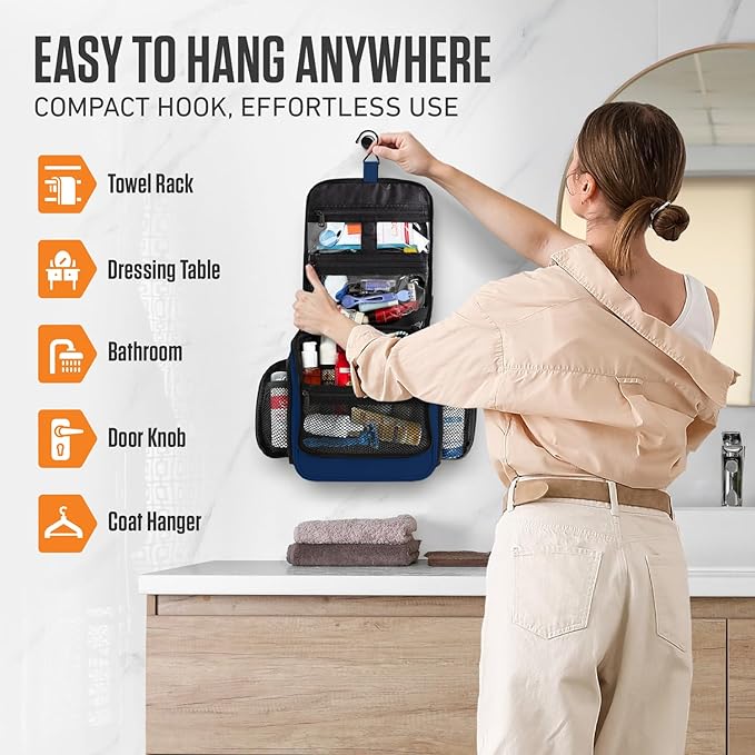 - HOOK & ORGANIZATION – 18 compartments and a versatile hook let you hang it, save space, or stand it upright when needed. Perfect for travel, camping, or at home.