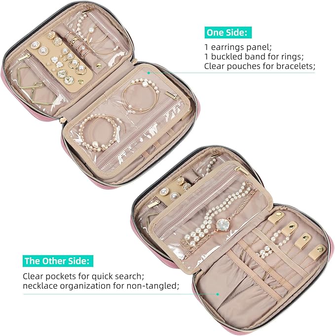 - WELL-ORGANIZED -With designated areas for earrings, rings, necklaces and bracelets .This jewelry case will keep you organized on the go and keep all your precious jewels in order