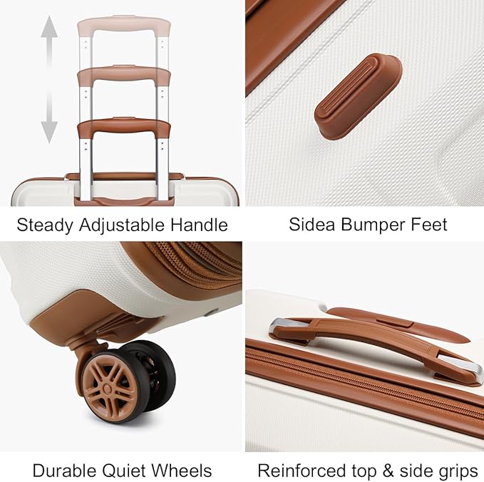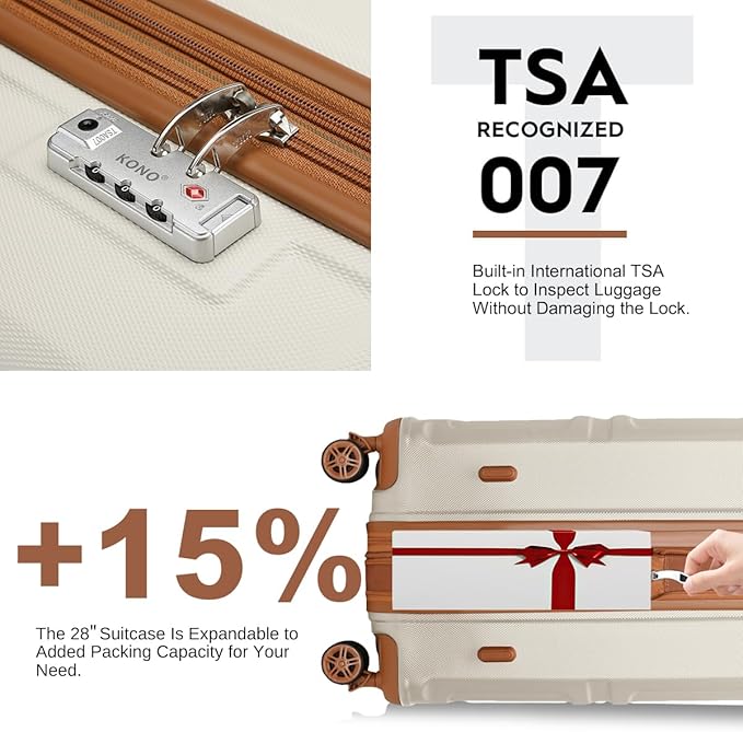 Kono 4 Piece Luggage Sets Expandable(only 28") Lightweight with Spinner Wheels TSA Lock Hardside Travel Rolling Suitcases 20in 24in 28in Carry on and 12in Mini Cosmetic Case Cream White
