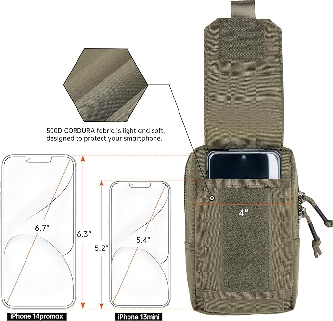- LARGE DOUBLE CAPACITY WITH MULTIPLE POCKETS: EDC Utility Pouch have one main zipper pocket, inner compartment, and mesh pocket, allow you storage small gadgets,cell phone, pen, keychain, medical supplies or any necessary gadgets you need. The front magic sticker closure phone pocket can be easily put into cell phone , Fit for various 4.7-6.7 inch smartphones , like iPhone 14/13/12/11/X SERIES, Galaxy S21/S21+/S20/ S20 Plus/S10+, Galaxy Note 10+/Note 9/Note 8