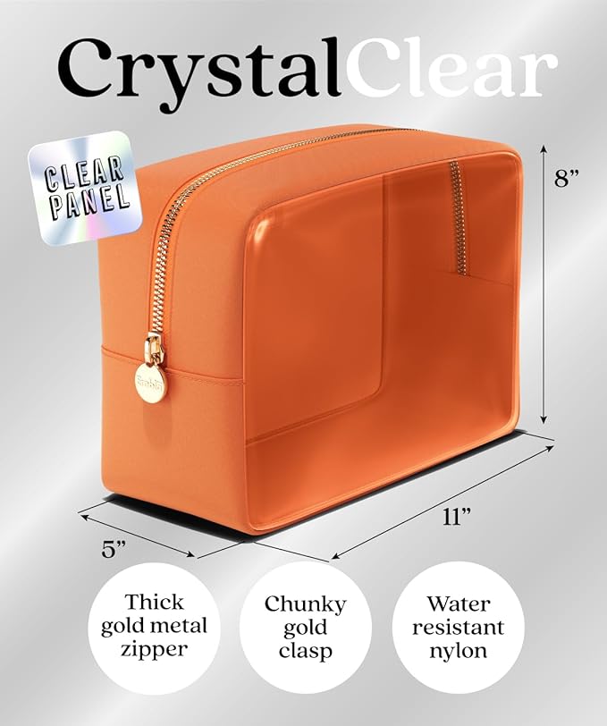 Embla London Makeup Bag Cosmetic Case, Clear Zipper Make Up Pouch and Toiletry Travel Tote, Cute Skincare Pouches for Women Girls, Preppy Purse Cosmetic Organizer, Large Makeup Bags, Peach