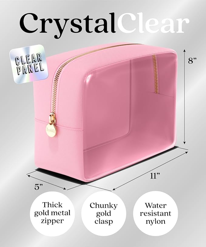 - TRAVEL IN STYLE - Need clear makeup bags for traveling to carry on to your airline flight? Our transparent pvc, vinyl mix toiletry bag pouches will make your traveling stress free. Perfect for toiletries, sunscreen for the beach, your accessories, personal item, snacks, lunch, coins, hair stuff, lipstick, diaper hygiene, skincare items, or any other accessory!
