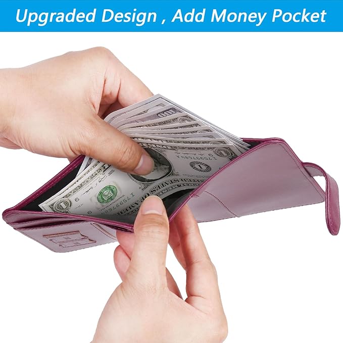 - 【TRAVEL MUST HAVES】 - The airtag slot version of the travel wallet has an extra money pocket and a metal pen. It is great holder for travel essentials. As long as you bring our passport wallet, you don’t need to bring another wallet. Yet With the hidden magnetic clasp design, the passport cover can maintain the beauty of the 3D embossing on the cover, and you can clip the passport case, clamping your passport and cards.