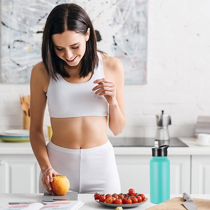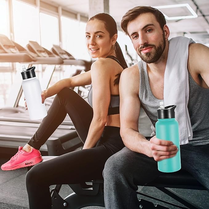 VEGOND 32 oz Insulated Water Bottle Bulk Stainless Steel Metal Water Bottles with Leak Proof Straw Lid & Spout Lid, Wide Mouth Double Walled Vacuum Travel Sports Bottle, 4 Pack