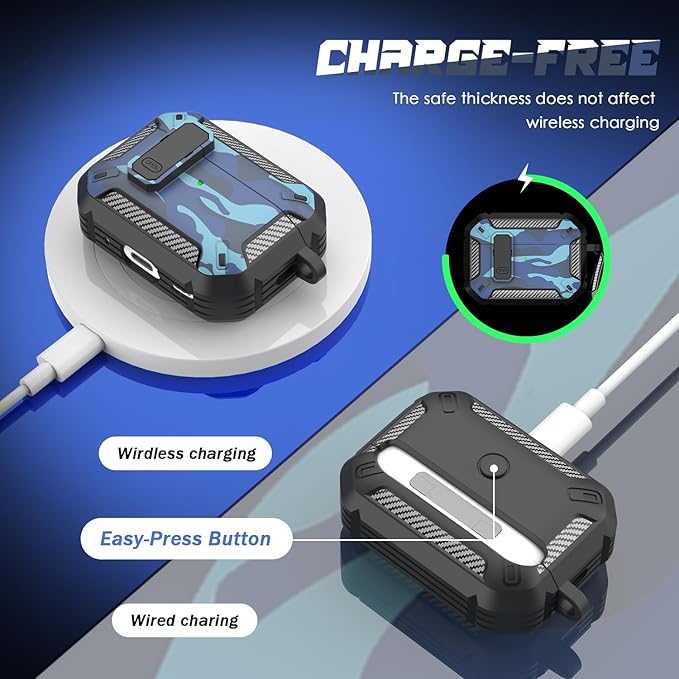 - Unique Security Lock: Upgraded security lock design makes it easier to open and close. Keeps the for AirPods charging case well closed and ensures that the cover never falls off.
