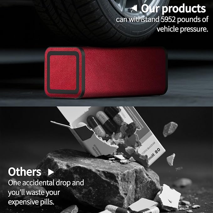 - You have small kids around and do not want them to get into your pills, this will definitely keep them out! May deter some people wanting to snoop or steal the contents. when traveling, you can easily slip this pillbox into your backpack or luggage, and have your medications handy and be confident they will not spill out in any way. it can be dropped and there is no worry about scattered pill box 7 day and loose pills, the combined features provide good security measures