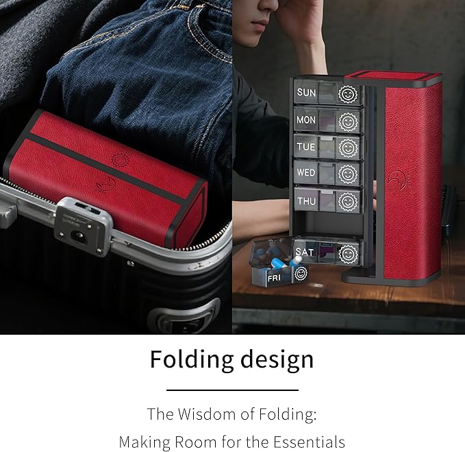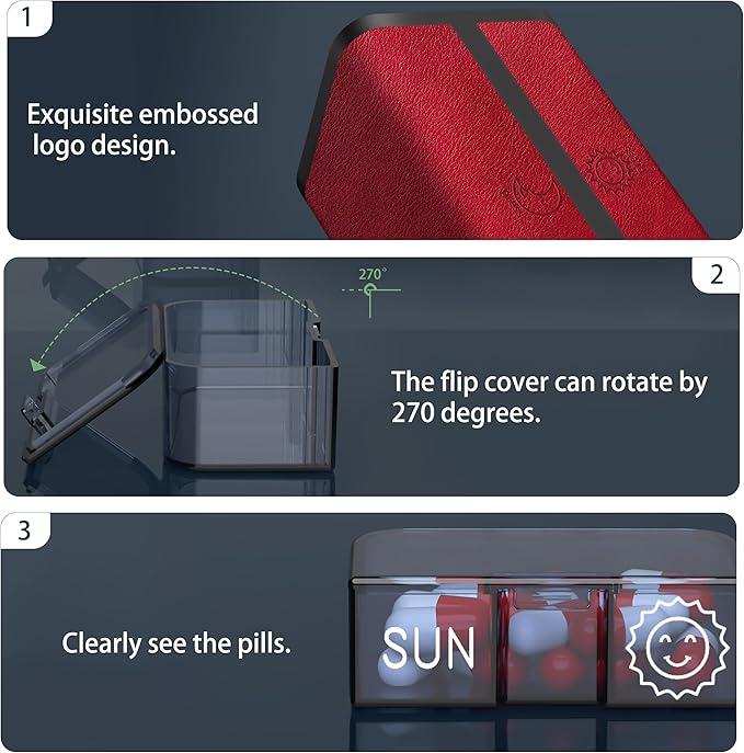 - The pill dispenser and organizers 7 day is a perfect piece of art that balances aesthetics and practicality, designed to add a touch of art to the lifestyle, and store any little things you want hidden and protected. And it can well avoid direct sunlight to your pills, and can protect the medicine very well.This is a nice and discreet pill holder, itโs perfect for anyone that has to carry medications and or vitamins