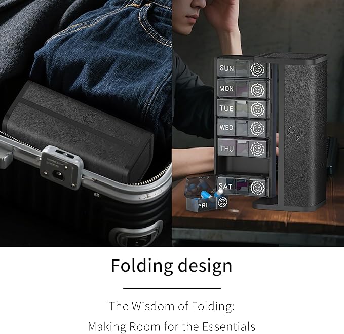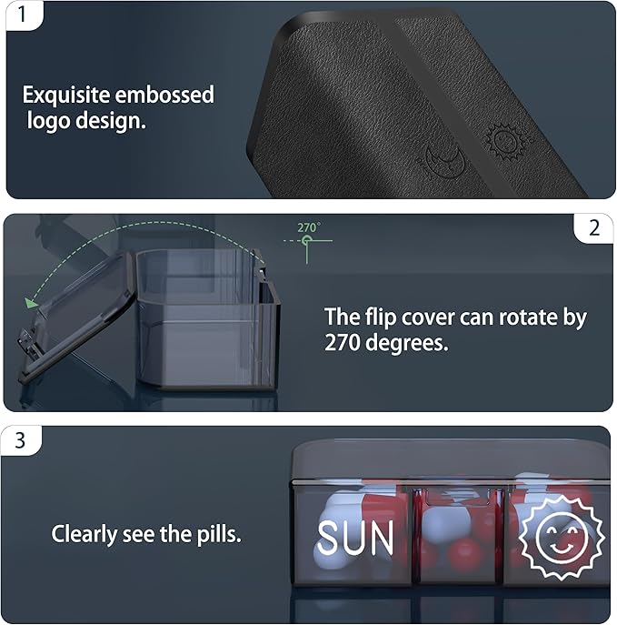 - The pill dispenser and organizers 7 day is a perfect piece of art that balances aesthetics and practicality, designed to add a touch of art to the lifestyle, and store any little things you want hidden and protected. And it can well avoid direct sunlight to your pills, and can protect the medicine very well.This is a nice and discreet pill holder, itโs perfect for anyone that has to carry medications and or vitamins