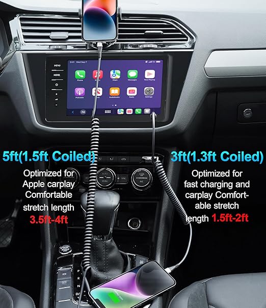 - 【Quality Service】 High quality product quality assurance, please use with confidence. Note: If you are experience problems with the CarPlay function, please try to re-plug the coiled iPhone charger cable for car, revere we the lightning plug before connecting to CarPlay.If you have any further questions, please feel free to contact us. We'll be happy to help you.
