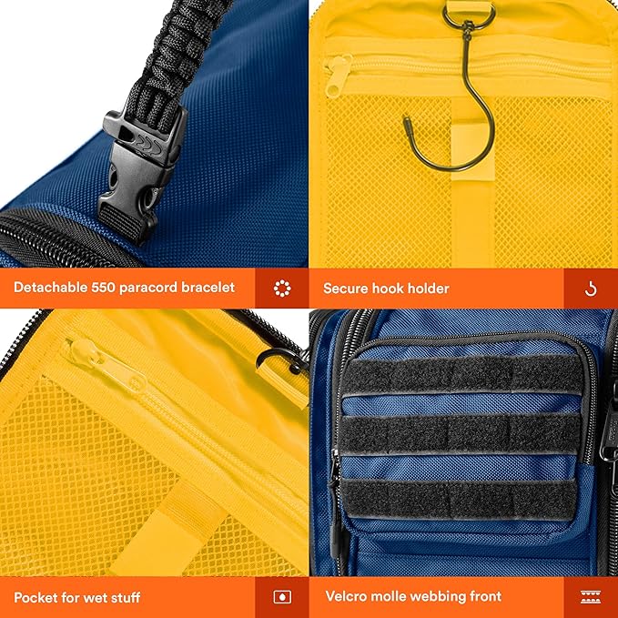 • DESIGNED FOR ANY OCCASION โ€“ Tactical inspired design that not only serves you in the hotel room but also in the unknown wilderness. The side molle webbing allows you to add tools & gadgets for quick access, or even a pouch for additional carry capacity. The handle is made from detachable 550 paracord and whistles for emergencies because anything can happen.