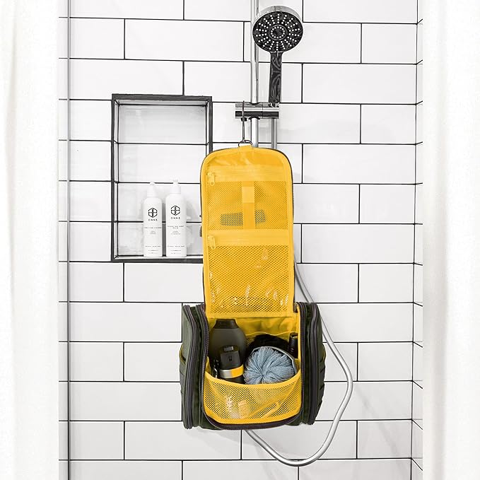 - STAY ORGANIZED WITH 12 UNIQUE COMPARTMENTS - It has two two-sided pockets for items that need quick access. A panel to hold the toothbrush & shaver. One large pocket for bottled goods. A mesh pocket for small personal stuff and one clear plastic pocket for wet items. This is the ultimate toiletry bag to help you stay groomed when on the go.