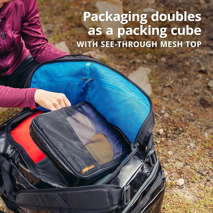 - Included packing cube with see-through mesh top for travel friendly organization.