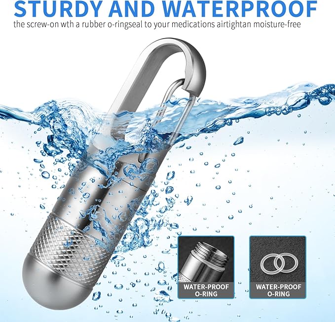 - Waterproof Pill Holder Keychain : Our pill container keychain can protect your medicine from moisture and water, keep dry and cool, maximize their freshness and prolong their shelf life. Suitable for carrying out and daily home use in any weather.