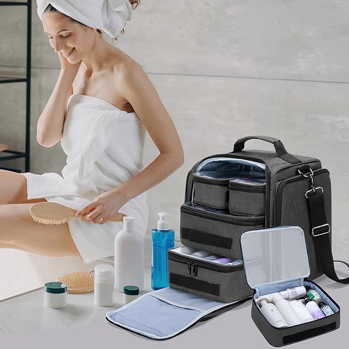 BAFASO Large Travel Toiletry Bag with 4 Removable Pouches, Multifunctional Makeup Bag Hair Bag for Toiletry and Makeup Supplies, Black