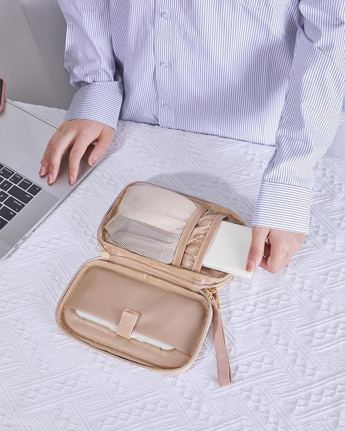 - - Considerate Design: The electronic travel organizer has two-layer interior compartment with enough space to the cell phone, power bank, battery case, adapter, charger, USB cable, mouse, apple pencil, flash drive, tech and other accessories; The exterior outer handy pocket is for passport/ ticket/ card/ travel necessarily.