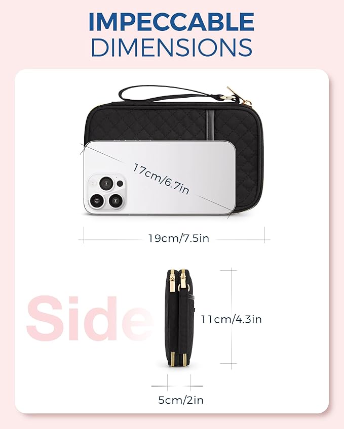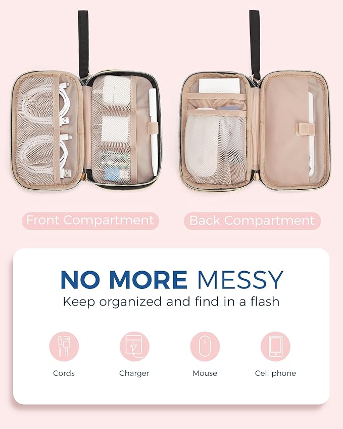- - Considerate Design: The electronic travel organizer has two-layer interior compartment with enough space to the cell phone, power bank, battery case, adapter, charger, USB cable, mouse, apple pencil, flash drive, tech and other accessories; The exterior outer handy pocket is for passport/ ticket/ card/ travel necessarily.