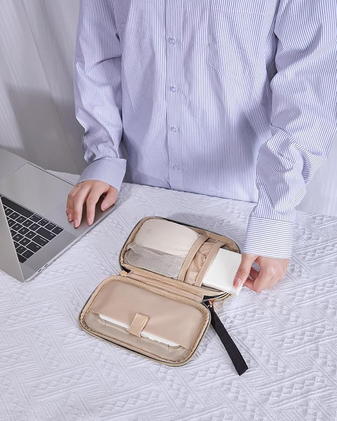 - - Practical and Convenient: The electronics organizer travel case comes with dual zipper closure and a comfortable hand strap for easy carrying, travel essentials keeps your electronic devices secure, an ideal tech pouch when going to work, going on a business trip, travel, office.