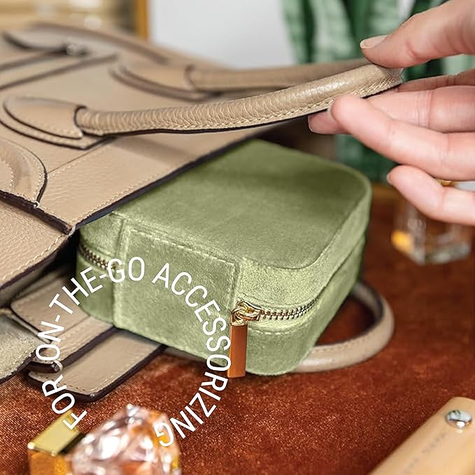 - LUXURIOUS VELVET FINISH: Designed in the USA, made from high-quality velvet material for a soft and luxurious feel, our jewelry case comes with a secret earring compartment and a built-in compact mirror. Completed with a gold-colored side zipper for a more classic and stylish look. Awesome travel accessories for women.
