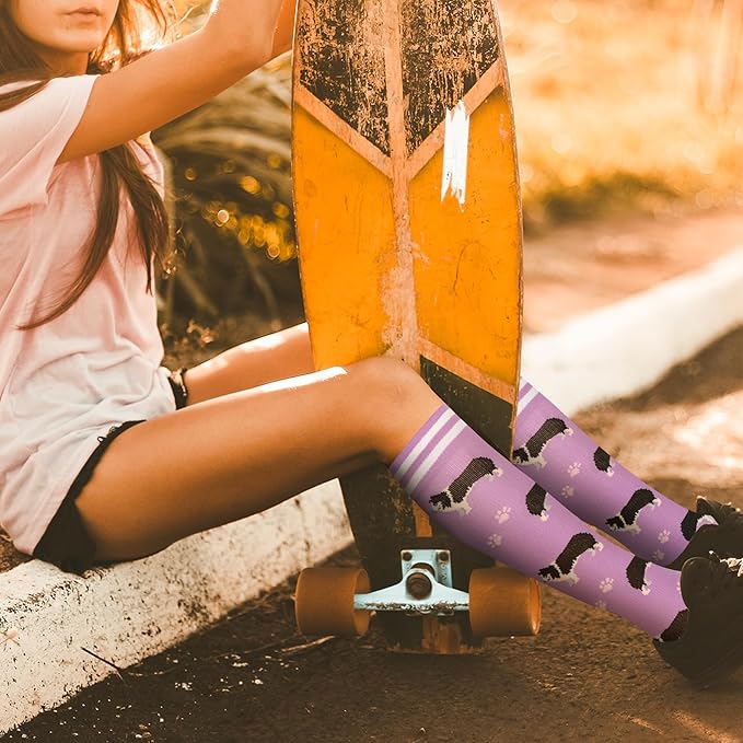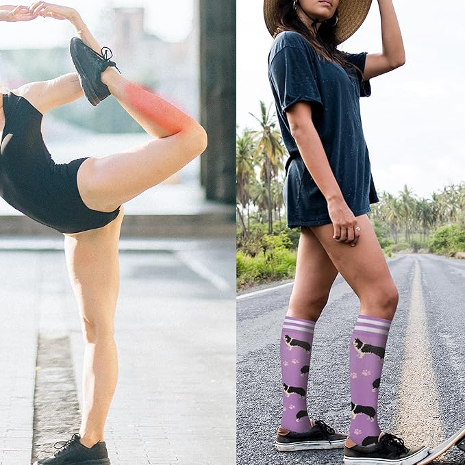 - KNEE HIGH SOCKS Bored with terribly samey socks? Donโt worry. We prepare a wide variety of cute compression socks for women. The colorful compression socks are carefully designed and the pattern design is very distinctive, The toe and heel portions are reinforced for added support and comfort. Just pick your favorite one from these fun compression socks to show your personality and style