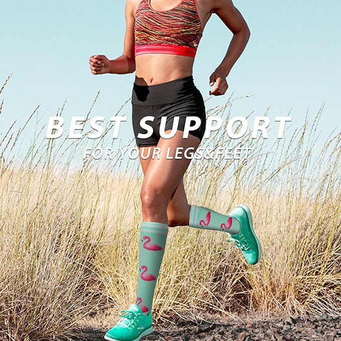 - KNEE HIGH SOCKS Bored with terribly samey socks? Donโt worry. We prepare a wide variety of cute compression socks for women. The colorful compression socks are carefully designed and the pattern design is very distinctive, The toe and heel portions are reinforced for added support and comfort. Just pick your favorite one from these fun compression socks to show your personality and style