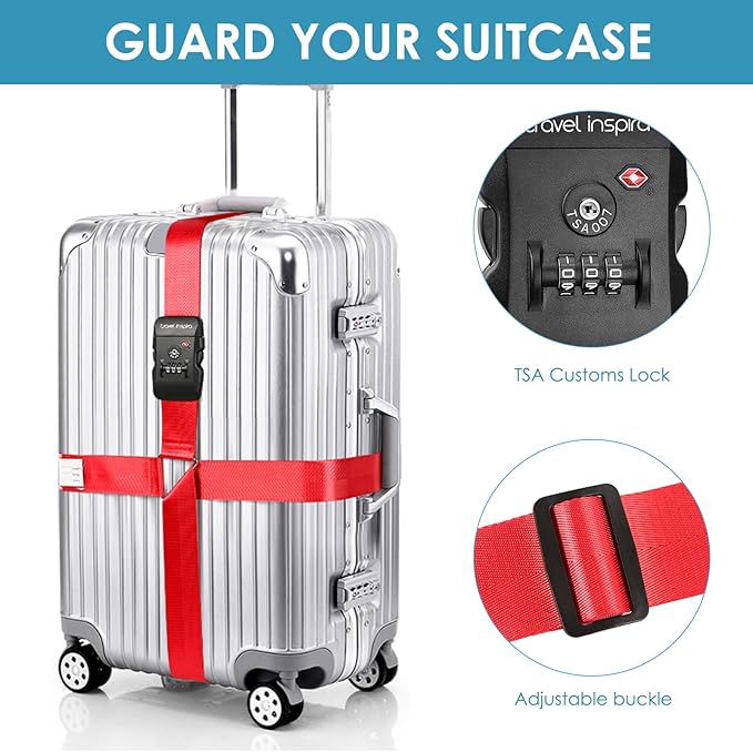 Travel Inspira Luggage Straps for Suitcases with TSA Lock, Protect Your Luggage Anti-Burst, High Visibility Color, Easy to Identify Luggage Adjustable Heavy Duty Belt for 20-32 Inch Suitcases