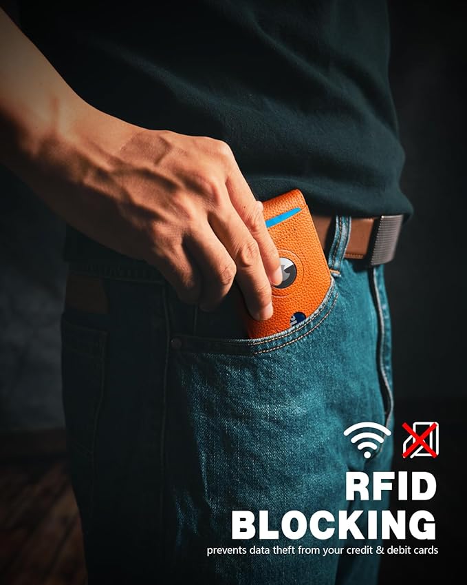 - Rfid Blocking Wallet- This wallet for AirTag boasts RFID blocking shield technology, safeguarding your personal and financial data against unauthorized scanning and identity theft. Enjoy peace of mind knowing that your information is safe and secure