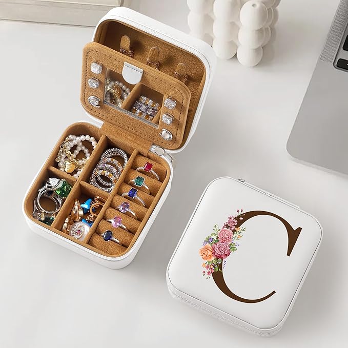 Parima Christmas Stocking Stuffers Gifts for Teenage Girls Women - Mother Birthday Gifts, Bonus Mom Gifts, Stepmom Gifts, Personalized Initial Jewelry Box Travel Jewelry Case - Letter C, White