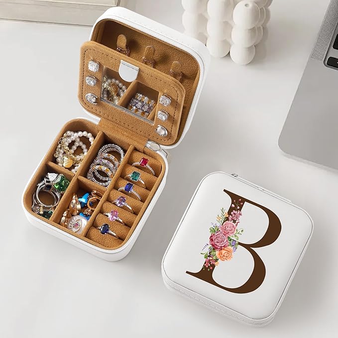Parima Christmas Stocking Stuffers Gifts for Teenage Girls Women - Small Travel Jewelry Box Jewelry Case Organizer for Women Bridesmaid Maid of Honor Bachelorette Party Wedding Day - Letter B, White