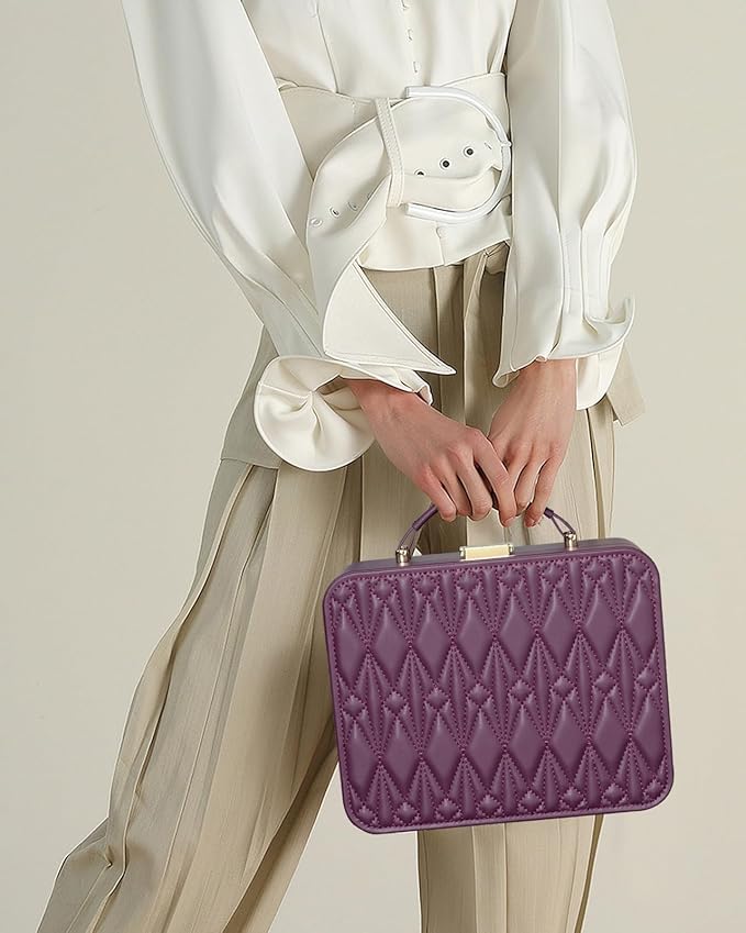 - Large travel jewelry case with a diamond shape on the top shows a high-level tridimensional sense. Use durable PU leather and soft velvet lining. Perfect for protecting your beloved jewelry from scratches and damage.