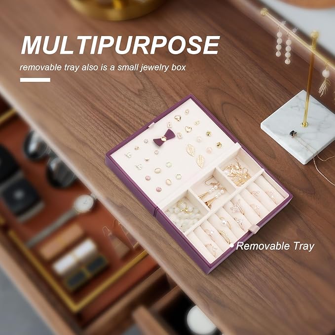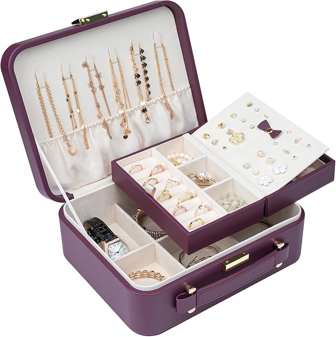 - 2-layer stackable large jewelry travel organizer is designed for organizing all types of jewelry. Whether the rings, earrings, necklaces, bracelets, watches, etc. Ensure all your most loved jewelry is well organized and ready to wear.