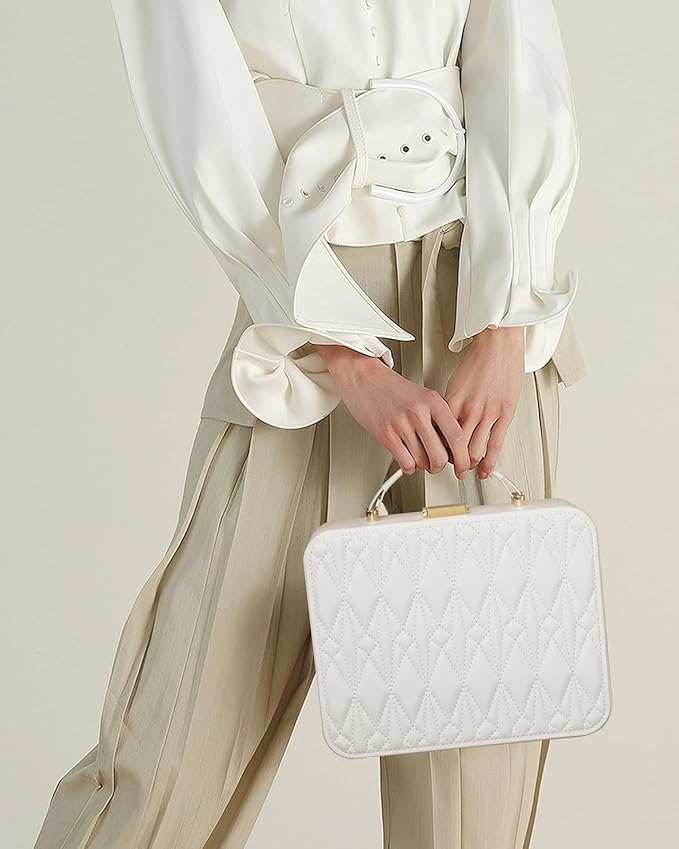 - Large travel jewelry case with a diamond shape on the top shows a high-level tridimensional sense. Use durable PU leather and soft velvet lining. Perfect for protecting your beloved jewelry from scratches and damage.