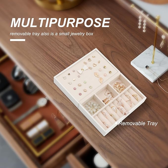 - 2-layer stackable large jewelry travel organizer is designed for organizing all types of jewelry. Whether the rings, earrings, necklaces, bracelets, watches, etc. Ensure all your most loved jewelry is well organized and ready to wear.