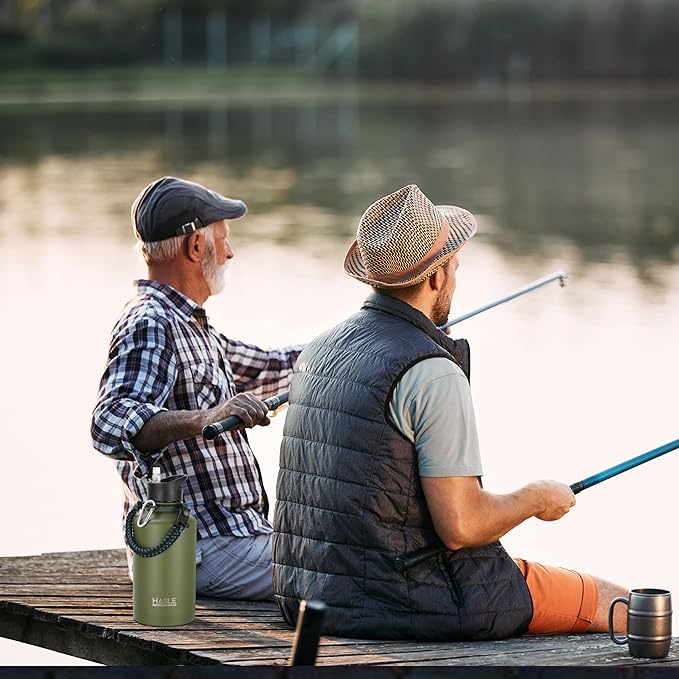 HASLE OUTFITTERS Half Gallon Insulated Water Bottles 64 oz, Stainless Steel Metal Water Jug with 2 Lids Keep Cold 48h/Hot 24h, Leak Proof & BPA-Free Water Flask Jug(Army Green,1)