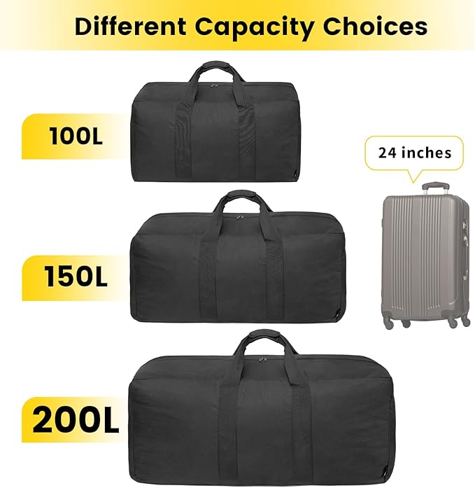 - Extra-large capacity: Unfolded Size: 31.5x16.5x11.8 inches, the duffle bag is 100L capacity, it is large enough to store all your gear and accessories for long trips and traveling. And it can fit your larger and heavier items nicely