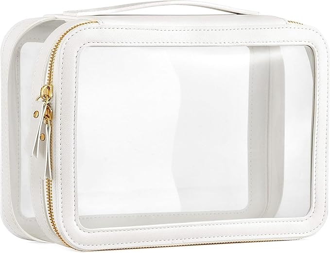 HBlife Clear Makeup Bag Organizer, Portable Travel Toiletry Cosmetic Case for Women, Large Make Up Bag Makeup Train Case Transparent Storage Pouch with Handle(White)