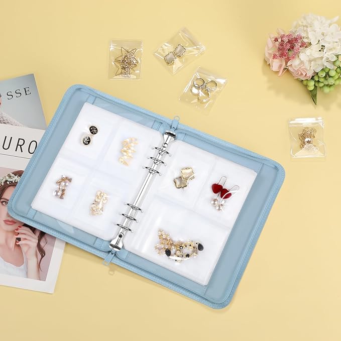 - Adjustable Ring Binder: Jewelry organizer comes with metal binder rings. Loose-leaf design allows you to add or remove pages flexibly as your needs. Tips: If you want to put some big and chunky jewelry, you might reduce some inner pages appropriately to avoid the binder zipper from not closing properly. Clear Jewelry bags make your jewelry easily to be stored and displayed just like a jewelry book.