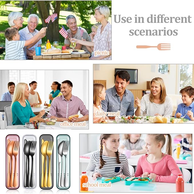 - Practical Cutlery Box: we have provided tableware boxes for each travel cutlery set, which are made of quality plastic materials, light in weight and suitable in size, and can help you store tableware, keep it clean and convenient for you to carry; Please wash carefully to avoid damage