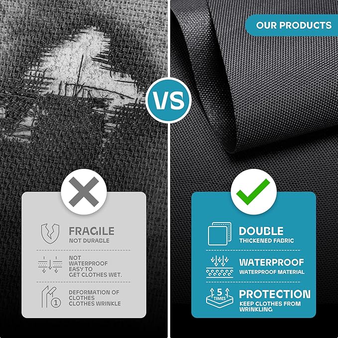 - Multifunction: The lightweight garment bag is perfect for protecting suits, tops, jackets, gowns, furs, and tuxedos during travel in planes or cars. It can also be hung in the closet to keep clothes organized