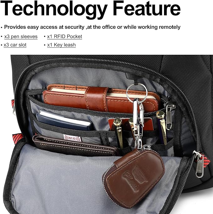 - Effortless Packing & Ample Storage: Packing has never been easier. Five exterior pockets provide quick access, while the spacious main compartment holds up to 3 or 4 days' worth of clothes. Your laptop stays safe in the padded compartment, and thoughtful details like pen sleeves, card slots, a key leash, RFID pocket, and hidden security pocket keep you organized and worry-free
