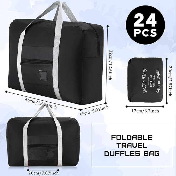 - Bulk Travel Bag Set: includes 24 foldable travel duffel bags, ideal for bulk use in group trips, giveaways, or business needs; Neutral design makes them suitable for both men and women