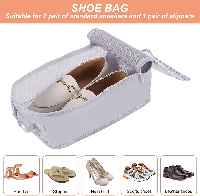 - VERSATILE SIZES FOR MULTIPLE NEEDS - The set includes shoe bag*1 (15.6*7.8*4.7inch/ 32*20*12cm), 2*large clothing bags (16.5*12.6*4.7inch/ 42*32*12cm), 1*medium clothing bag (13.7*8.66*3.14inch/ 35*22*8cm), and 2*small clothing bags (8.66*7.08*3.15inch/ 22*18*8cm). This variety of sizes accommodates various items such as shoes, clothes, accessories, and more.