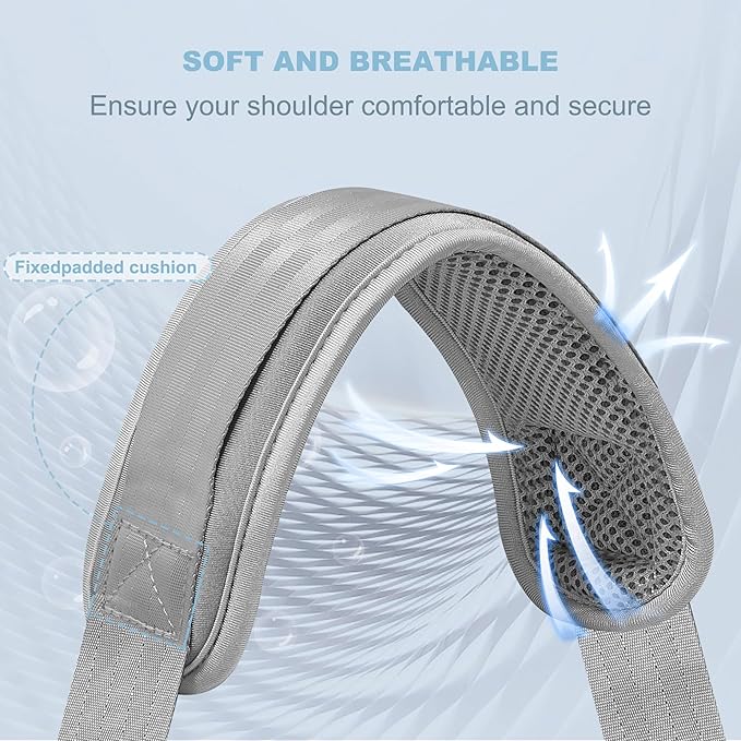 - Adjustable - The shoulder strap can be adjusted between 37 inch to 60 inch (95 cm to 152 cm) in length, 1.5 inch in width. Pad Length: 12.6 inch and Width: 2.8 inch. The easy adjustment in length allows for the perfect fit. suitable for people whose height is between 1.5 meters and 1.9 meters.